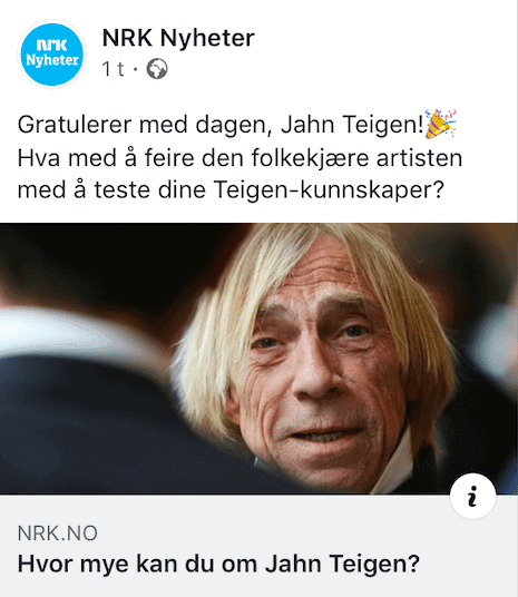 Ikke bare har NRK stjålet long read-leserne fra avisenes ukentlige helgemagasiner, noe som kanskje – det kan i det minste tenkes – har ført til at disse enten legges ned eller bare blir dårligere og dårligere, samtidig som de komplett har maltraktert og rævpult det lille vi har igjen av essayistisk språkføring her på ‘bjerge, til fordel for korthugde setninger, hyppige linjeskift og malplasserte konjuksjoner, de har OGSÅ stjålet Start.no og NATT&DAGs eneste fortrinn: Quiz! Søndag Summarum-redaksjonen sender sine kondolanser til N&Ds nettredaksjon.
